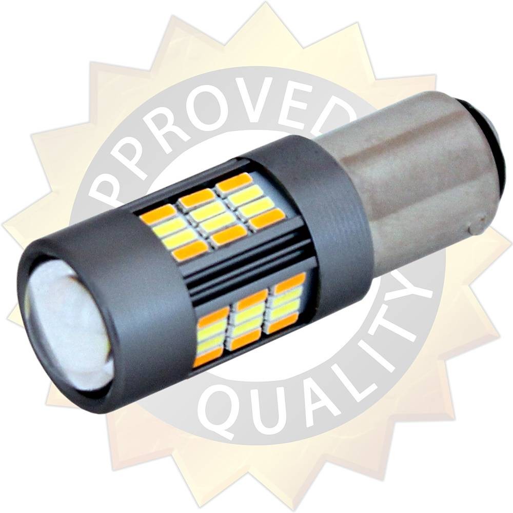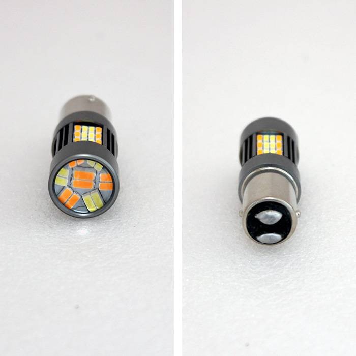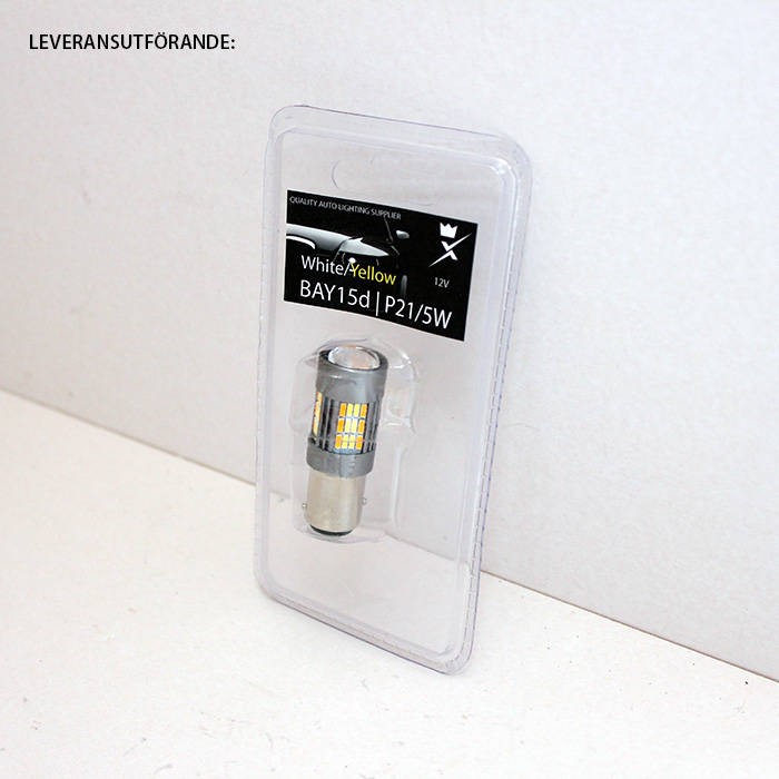 BAY15D 2-polig diodlampa som skiftar ljusfärg mellan Vit (Positionsljus) och Gul/Amber (Blinkers) beroende på vald funktion i fordon med gemensam lampa för positionsljus och blinkerssignal.