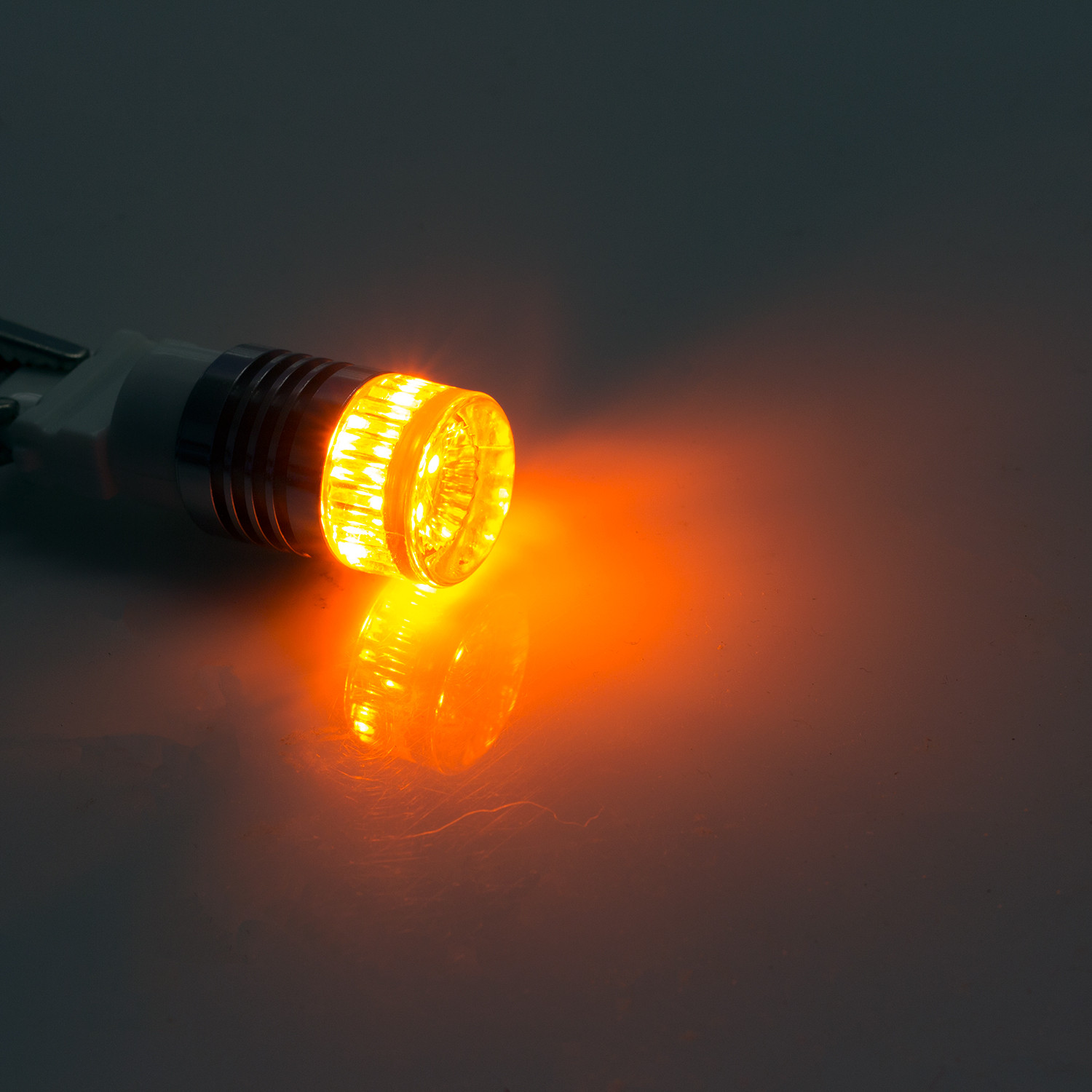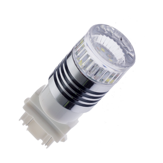 Kraftig LED-lampa med sockel P27/7W (kallas också 3157) och totalt sex lysdioder: tre gula, tre vita.