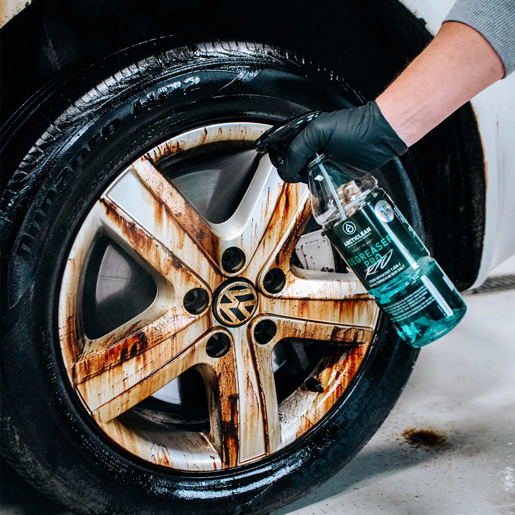 Denna kallavfettning är otroligt enkel att använda. Bara spraya på, låt den verka och skölj sedan av. Vår Degreaser Pro är skonsam mot alla typer av hårda material och ytor såsom lack, plast, aluminium, krom och övriga lackade ytor. (P.g.a. utsträckning av problem med känsliga lyktor på ex. VAG-bilar vågar vi inte garantera hållbarhet på dessa – men vi har tvättat hundratals utan några problem).