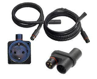 Grenkabelsatserna innehåller skarvkablar i lämpliga längder, Y-förgrening till motor- och kupévärmaren samt i vissa fall ett kupéuttag.