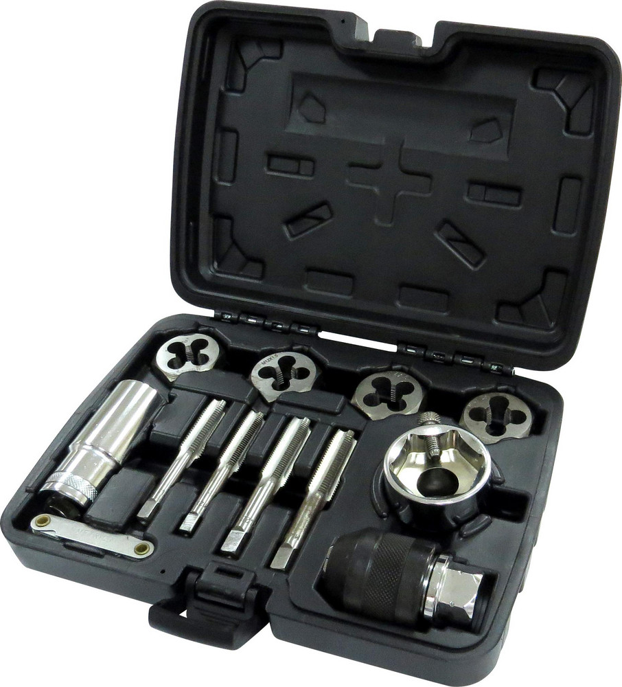 Gängverktyg för att göra in-och utvändiga gängor M12 1,25 & 1,5, samt M14 1,25 & 1,5. Gängkloppa av unik ny modell med spärrhandtagsfunktion kan köpas till separat. Gör jobbet betydligt smidigare. Innehåll: Gängtappshållare, gängsnittshållare, gängtappar och gängsnitt. Komplettera gärna med gängkloppor med spärrfunktion.