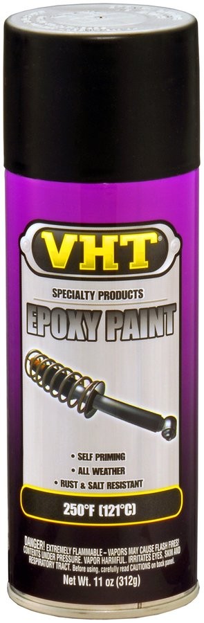 VHT Epoxy är en enstegs epoxy lack som inte behöver en primer utan kan användas direkt på de flesta material. VHT Epoxy ger en yta som liknar ugnslackerat och är resistent mot bland annat bränsle, kemikalier, rost och vägsalt. Kan under korta perioder utsättas för temperaturer upp till 121°C. Levereras i 400ml burk som räcker till ca 1,1-1,3 m2.